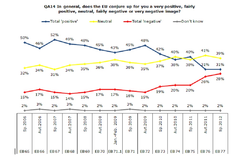 Dette kan utlegges som at folk er frustrerte over at det generelt ikke går bra og i slike situasjoner gir uttrykk for minkende tillit til politikere og politikk uansett nivå. Med litt velvilje kan vi også forstå det som om «folket» er klar over at det er nasjonale politikere, dvs. medlemsstatene, som har siste ordet også i EU.